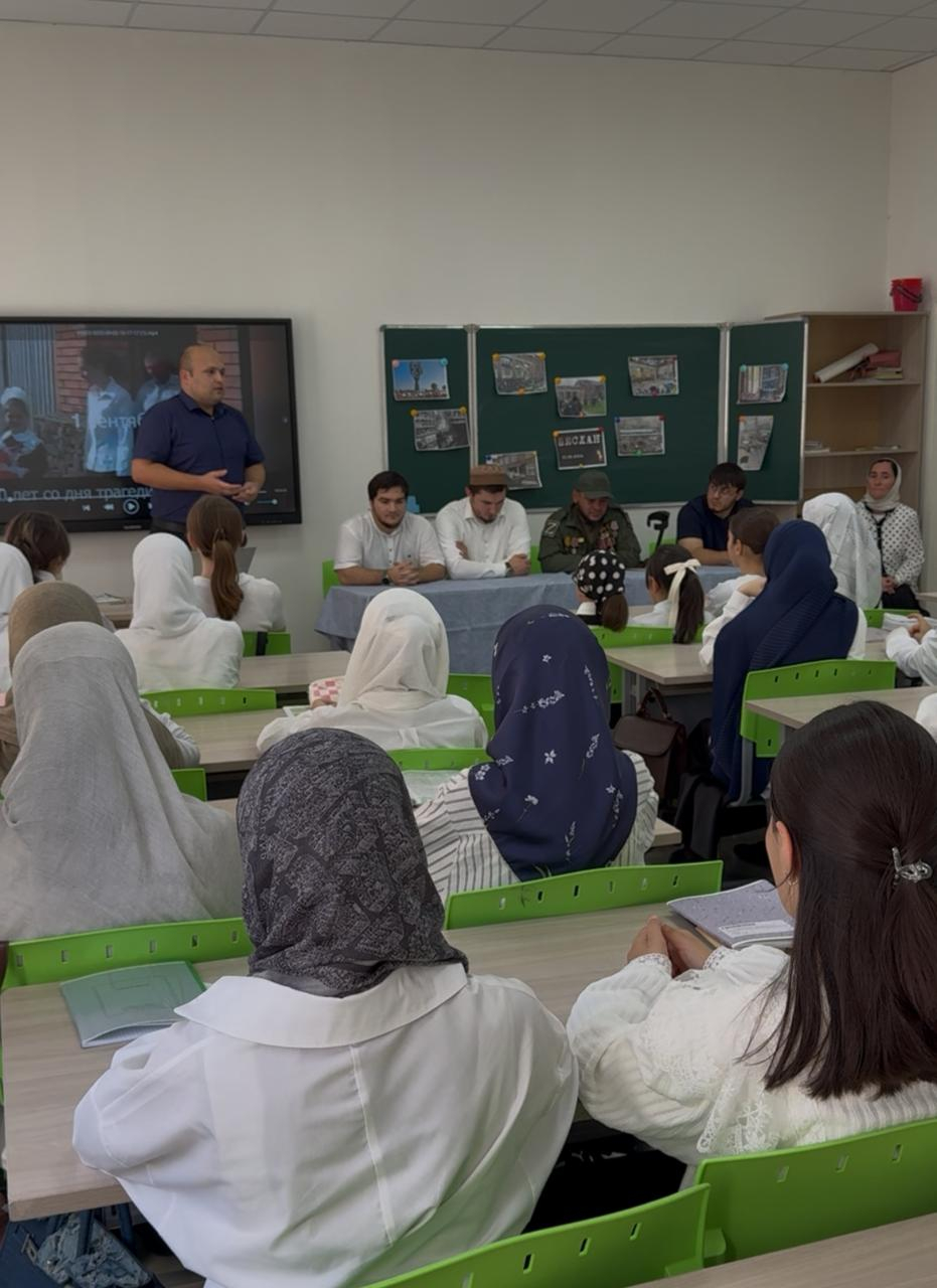 Школьники активно участвовали в диалоге, задавали вопросы гостям и делились своими размышлениями о мире, дружбе и ответственности за будущее страны. Для наглядности были показаны тематические видеоролики, напомнившие о важности единства общества перед лицом общих угроз.