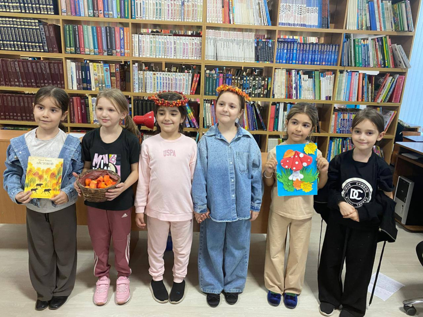 В детской библиотеке Хасавюрта состоялся утренник из цикла мероприятий «Времена года» под названием «Хоровод осенних листьев», в котором приняли участие учащиеся 1 класса прогимназии «Сказка».