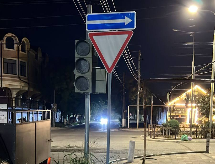 В соответствии с предписанием Отдела ГИБДД МВД по городу Хасавюрт, Управление коммунального хозяйства города осуществило установку дорожных знаков 3.27 «Остановка запрещена» и 5.7.1 «Выезд на дорогу с односторонним движением».