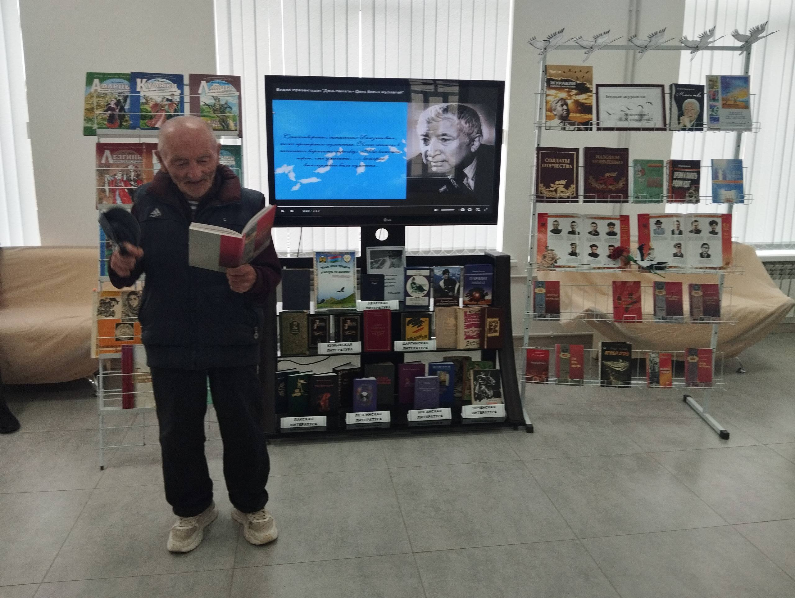 Особое впечатление на участников произвело выступление старейшего читателя библиотеки, который прочитал знаменитое стихотворение Расула Гамзатова «Журавли» на родном аварском языке.