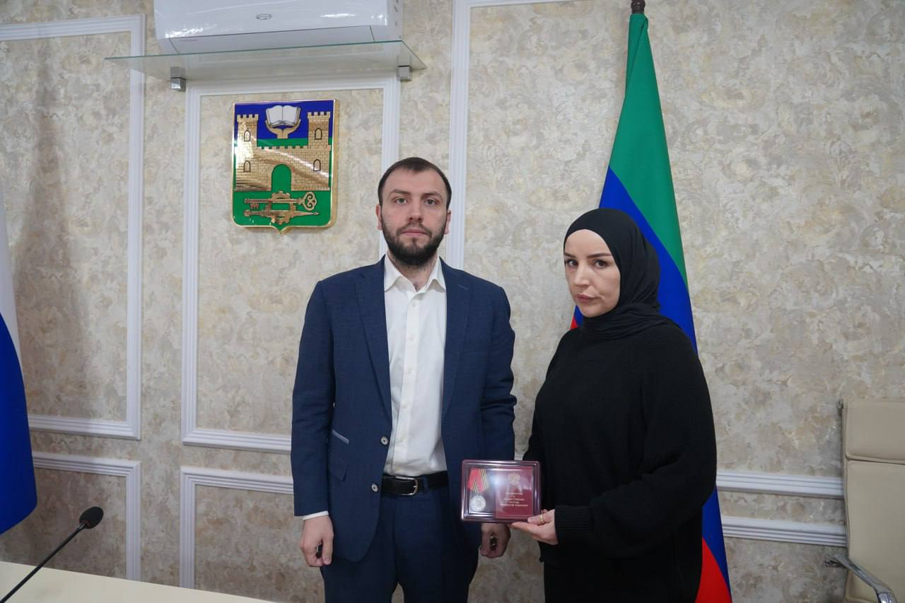За мужество и отвагу, проявленные в ходе боевых действий при защите Отечества и государственных интересов Российской Федерации, участник СВО из города Хасавюрта Мурад Магомедов был удостоен медали Жукова. Награду передали супруге и сестре погибшего - Меседо Курбановой и Меседо Омаровой.