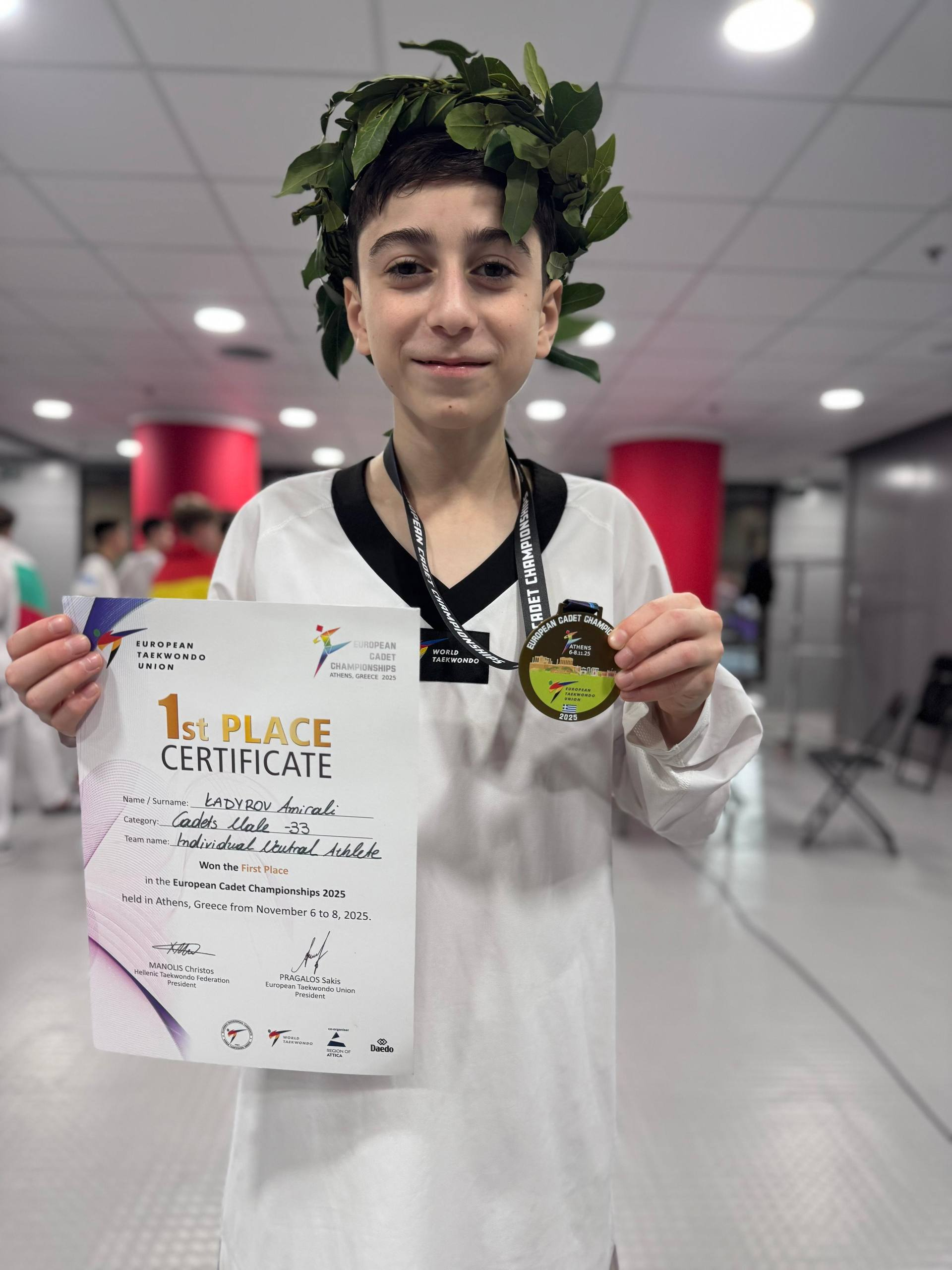 Тхэквондист из Хасавюрта Амирали Кадыров (2011 года рождения) достойно представил страну на Первенстве Европы среди кадетов, которое проходило с 6 по 8 ноября в Афинах - столице Греции. Юный спортсмен продемонстрировал высокий уровень подготовки и стремление к победе, что стало залогом его успеха, и, как следствие, привело к золотой медали в категории 33 кг.