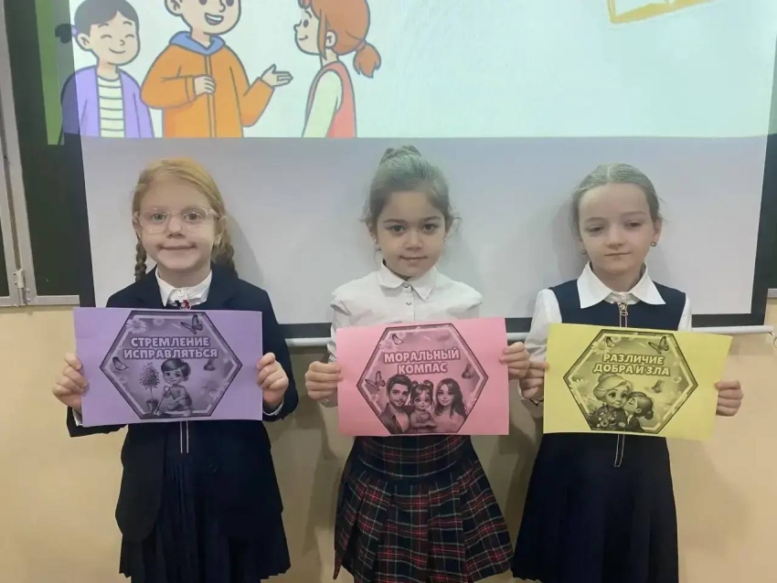 — «Первые шаги к доброте» — с самыми младшими школьниками говорили о том, что такое совесть, почему добрые дела достойны уважения и как отличать правильное от неправильного.