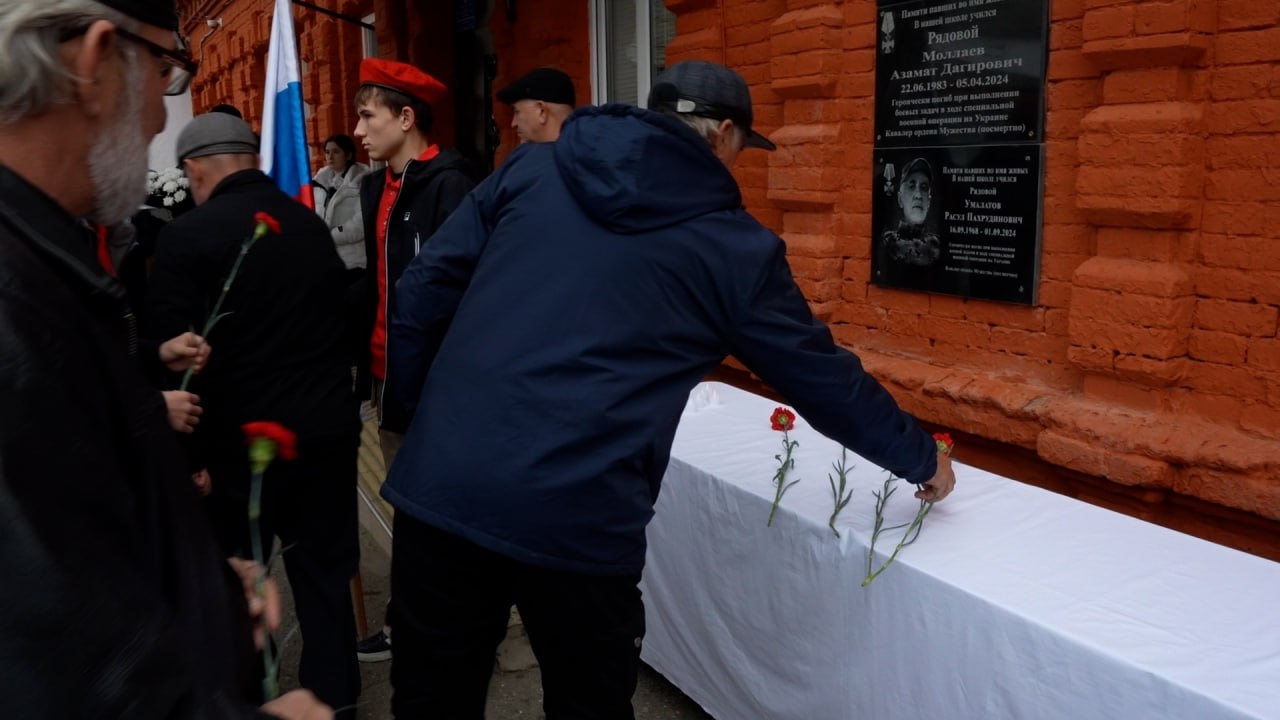 В гимназии № 1 города Хасавюрта состоялось открытие мемориальной плиты в честь погибшего участника специальной военной операции Наби Индербиева. Мероприятие прошло в образовательном учреждении, в котором обучался военнослужащий.