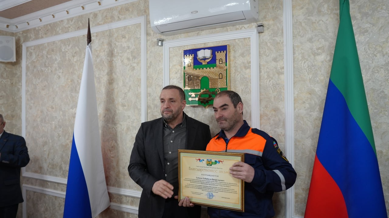 В Администрации города Хасавюрта состоялось награждение благодарственными письмами, приуроченное ко Дню спасателя Российской Федерации и 35-летию со дня основания спасательной службы МЧС России.
