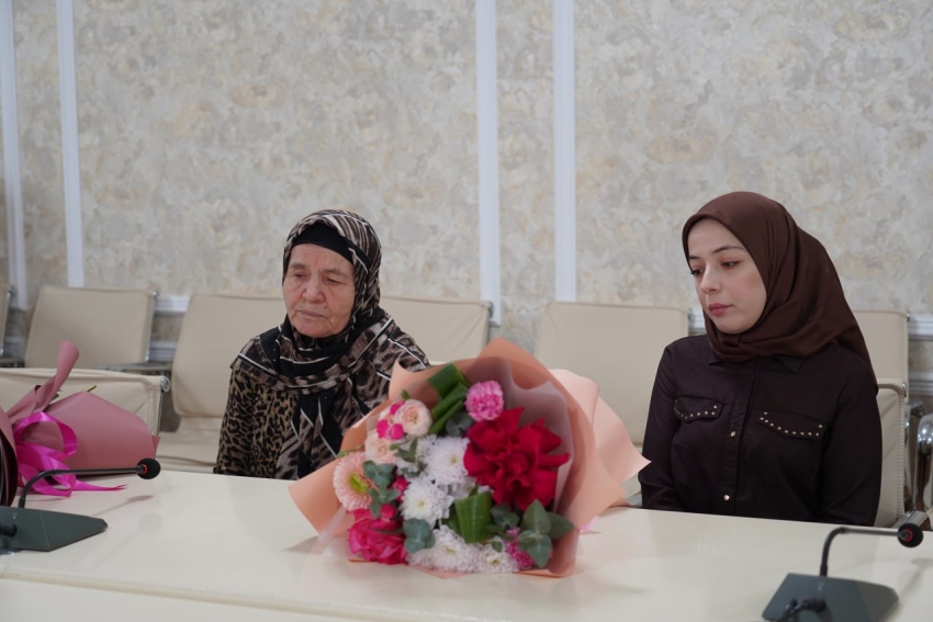 В мэрии Хасавюрта прошло мероприятие по передаче ордена Мужества семье погибшего участника специальной военной операции Саида Халиева. Государственную награду Глава города передал матери и дочери Героя Хадижат и Сабине Халиевым.