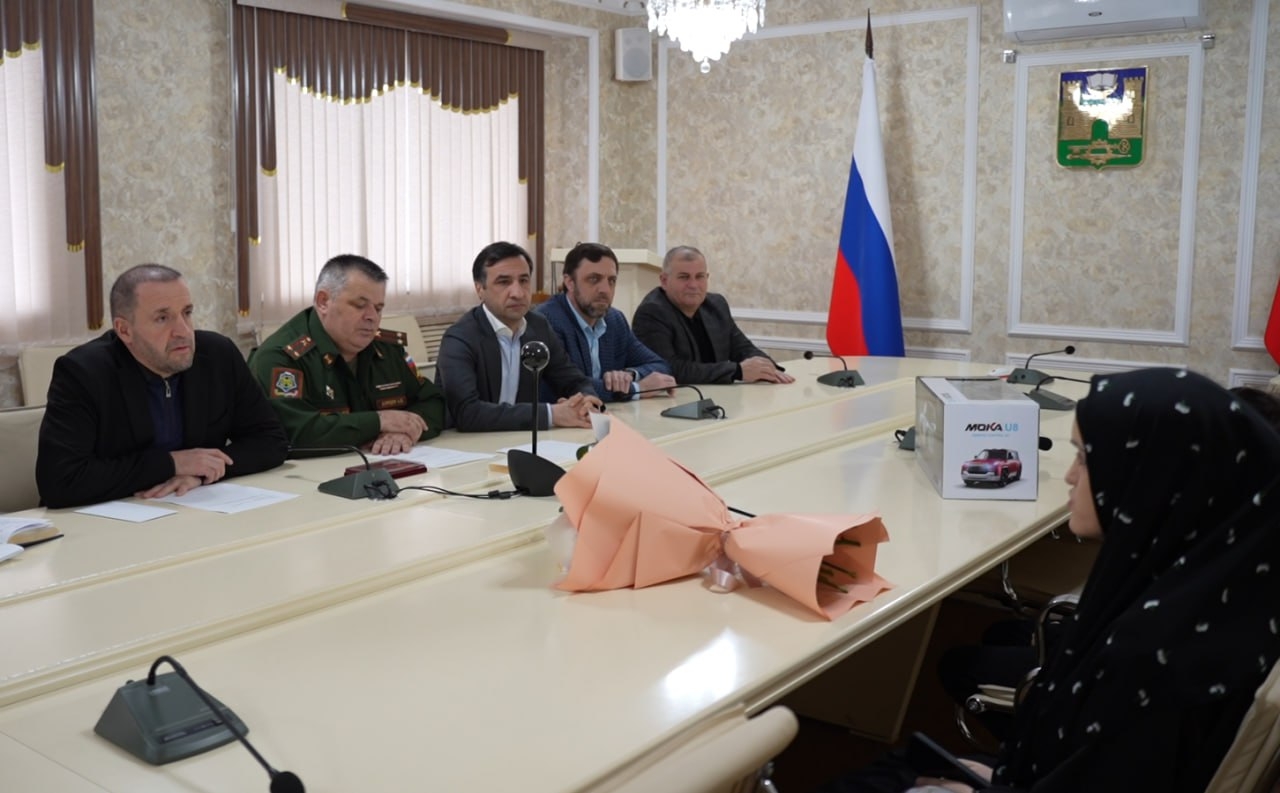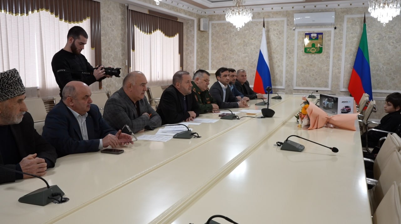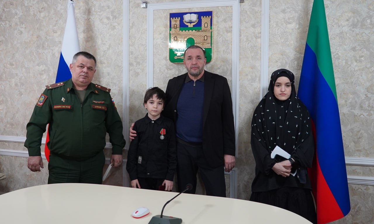 В конференц-зале администрации города состоялась церемония передачи медали Суворова семье погибшего участника специальной военной операции Адунапи Газимагомедова. Государственную награду супруге военнослужащего Умукусум Иразихановой и его сыну Рамазану Газимагомедову передал Глава Хасавюрта Корголи Корголиев.