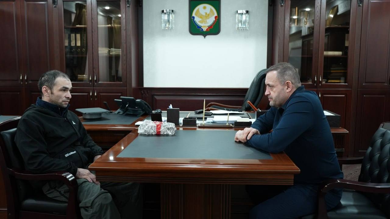 Глава Хасавюрта Корголи Корголиев встретился с участником СВО Анзором Абучевым