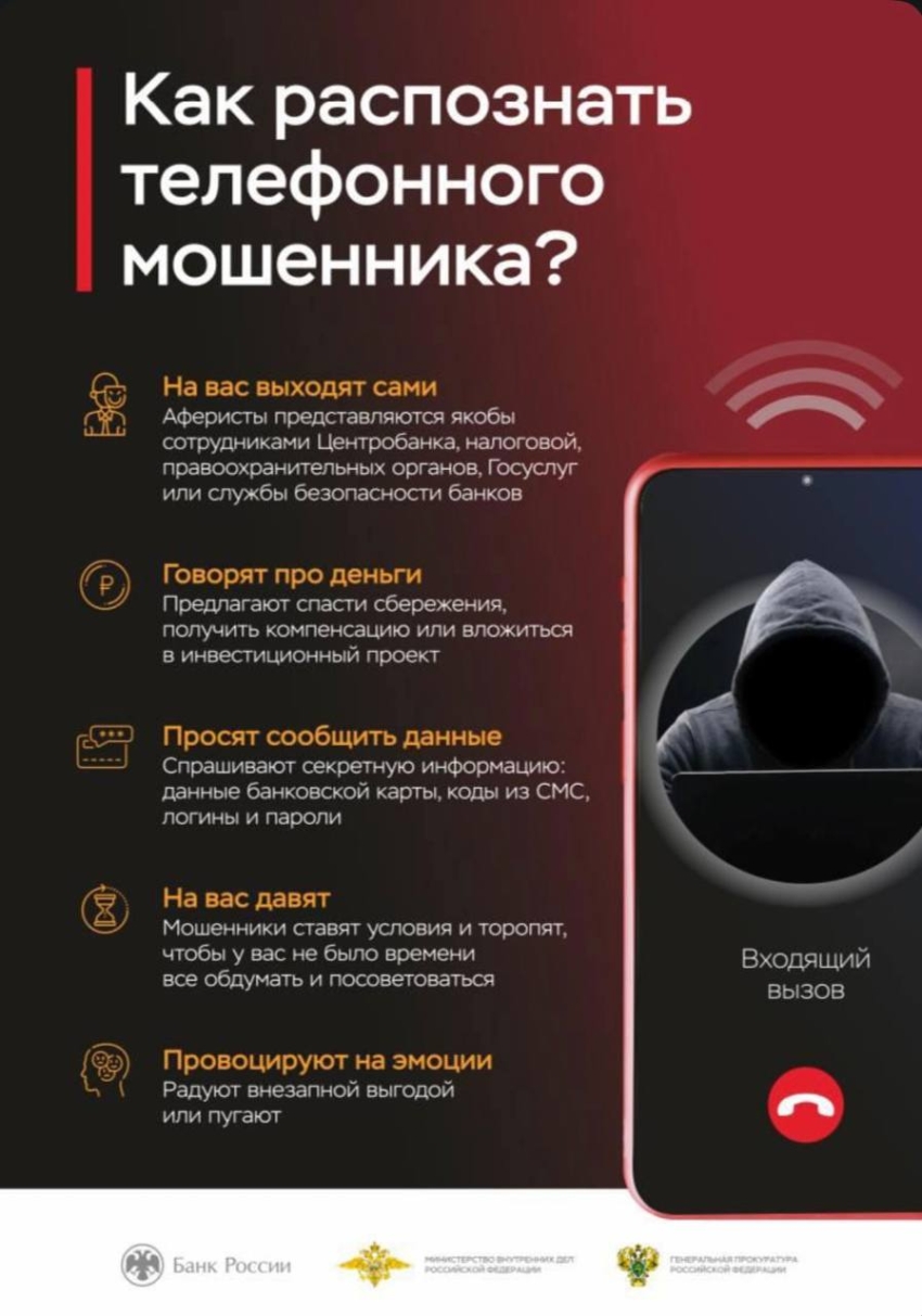 В рамках профилактики мошенничества и повышения финансовой грамотности жителей, приводятся примеры распространённых схем обмана и признаков, по которым злоумышленников удаётся выявить.