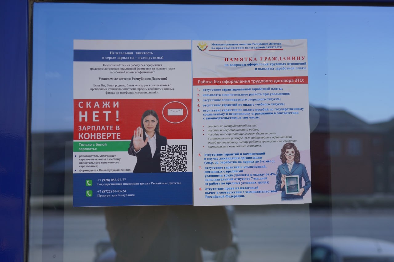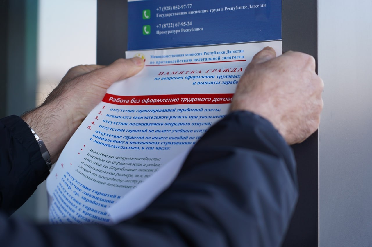 В ходе рейдовых мероприятий рабочая группа Муниципального образования городской округ «город Хасавюрт» Межведомственной комиссии Республики Дагестан по противодействию нелегальной занятости проводила работу по распространению полиграфических материалов - буклетов, листовок и самоклеящихся объявлений в крупных торговых центрах города. В них содержалась информация о негативных последствиях нелегальной занятости и выплат заработной платы «в конверте».