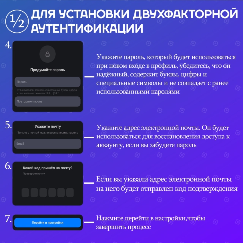 Двухфакторная аутентификация помогает дополнительно защитить аккаунт от злоумышленников. Чтобы включить её, необходимо установить пароль для входа.