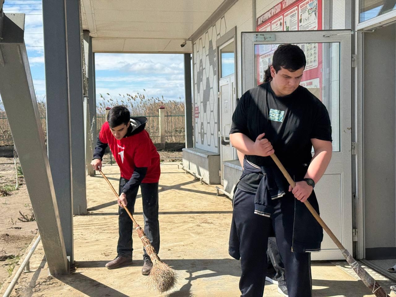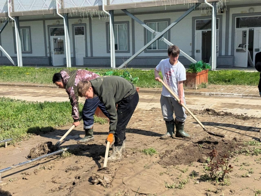 В числе волонтёров также активисты волонтёрского отряда «Движение первых», которые вместе с другими ребятами помогают в расчистке помещений и приведении территории в порядок.