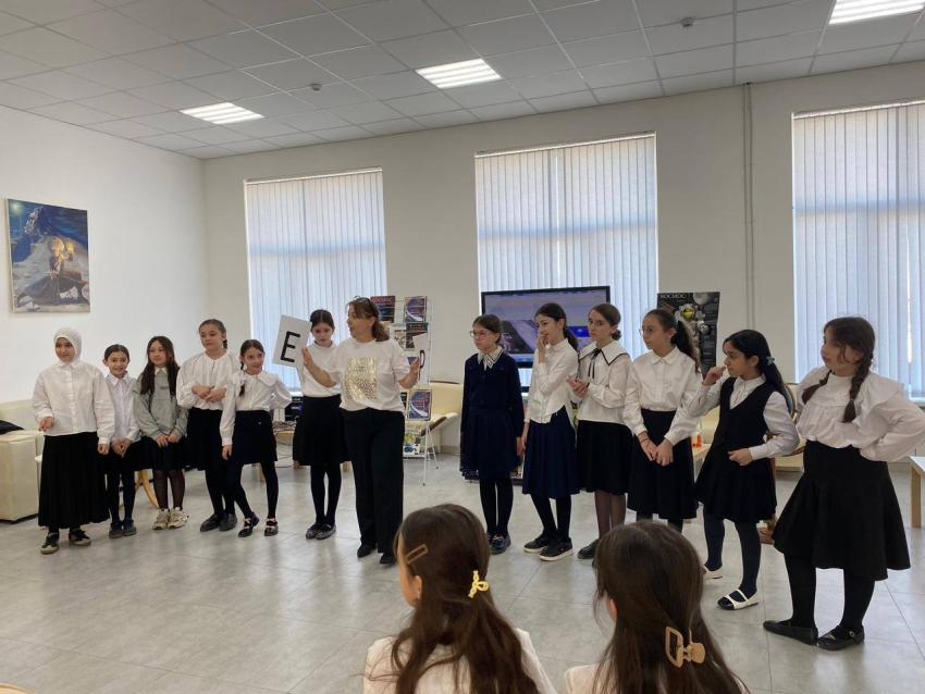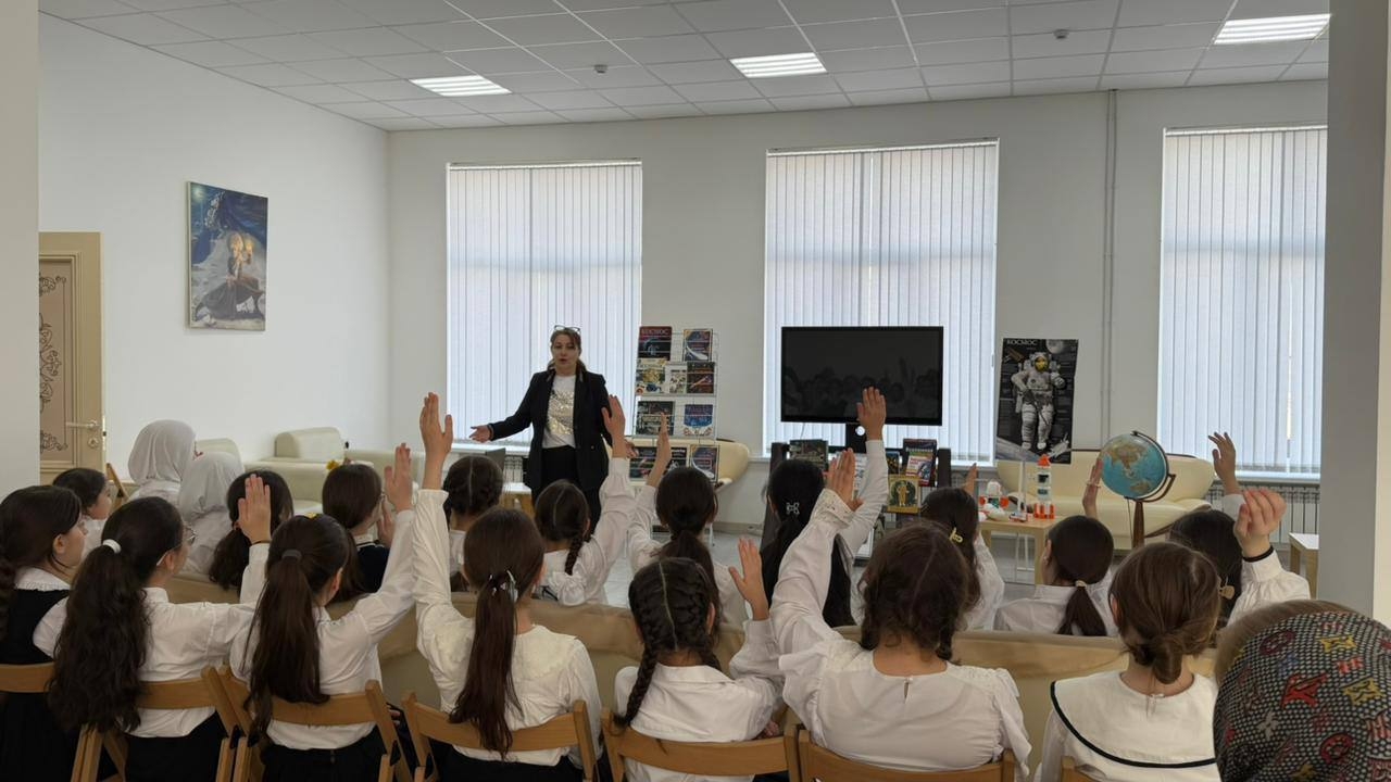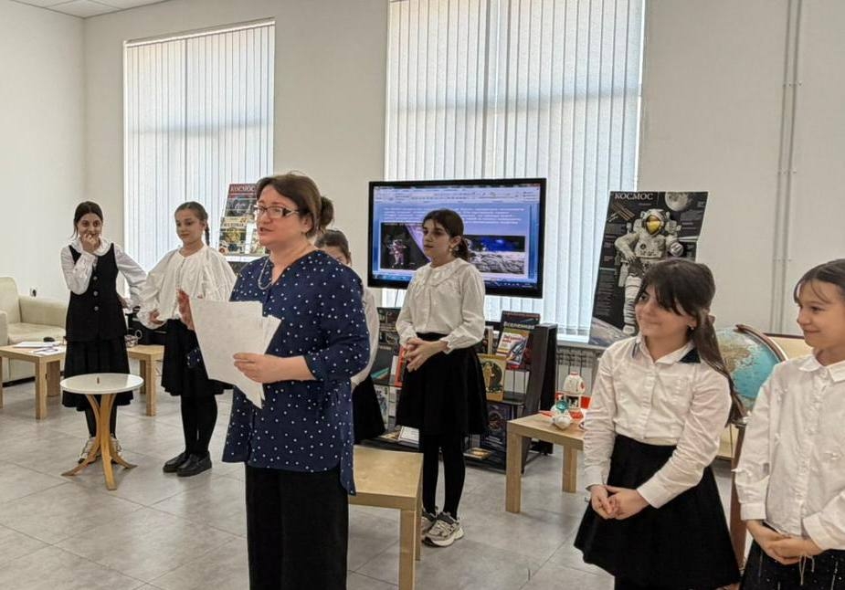 В библиотеке Хасавюрта ко Дню космонавтики для учащихся 4 класса средней школы №3 проведён тематический час «Космос далёкий и близкий».