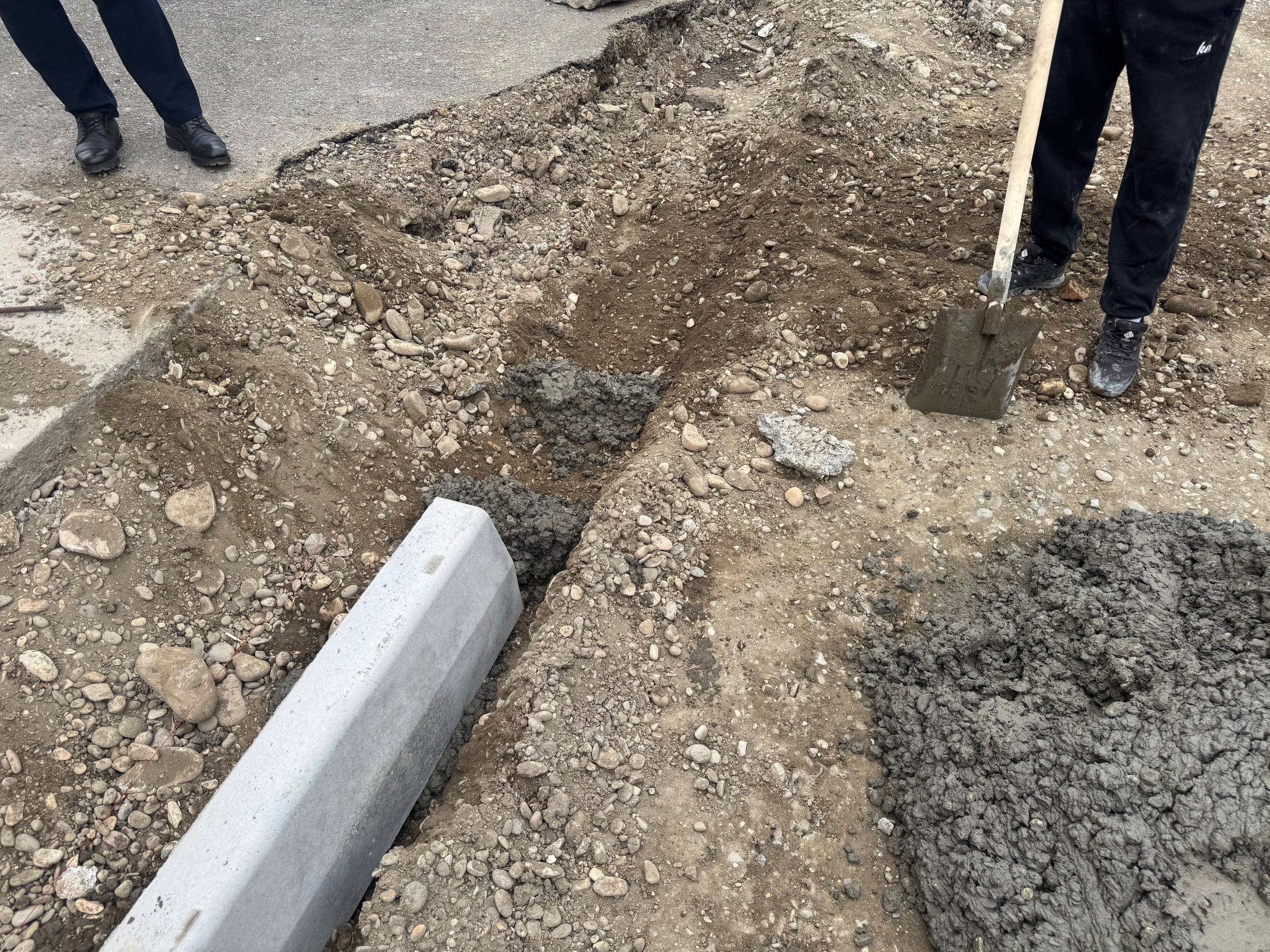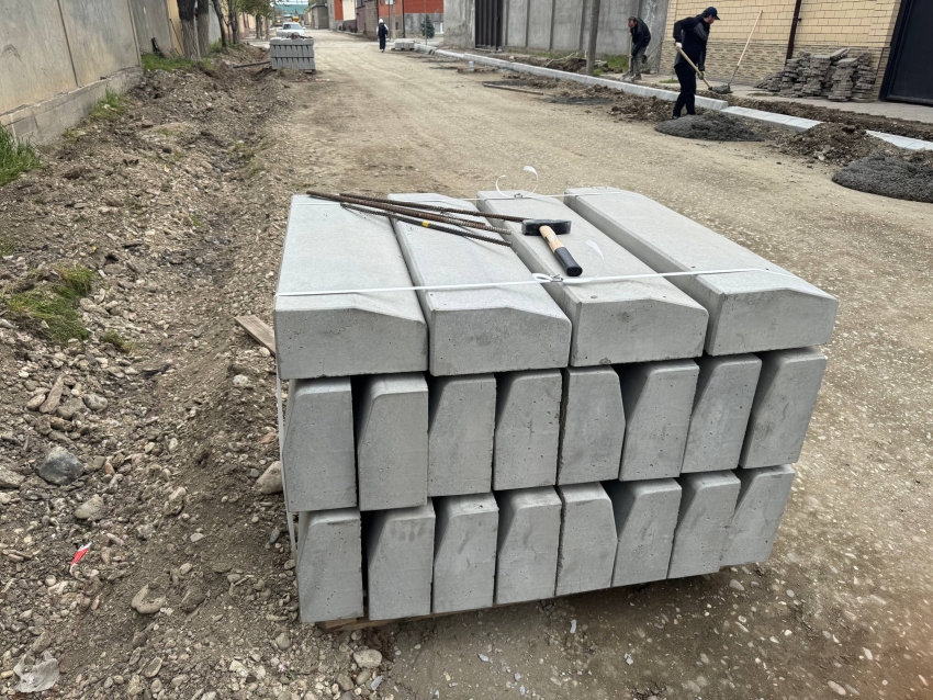 В настоящее время ведутся работы по устройству бортового камня, а также подготовке дорожного основания.