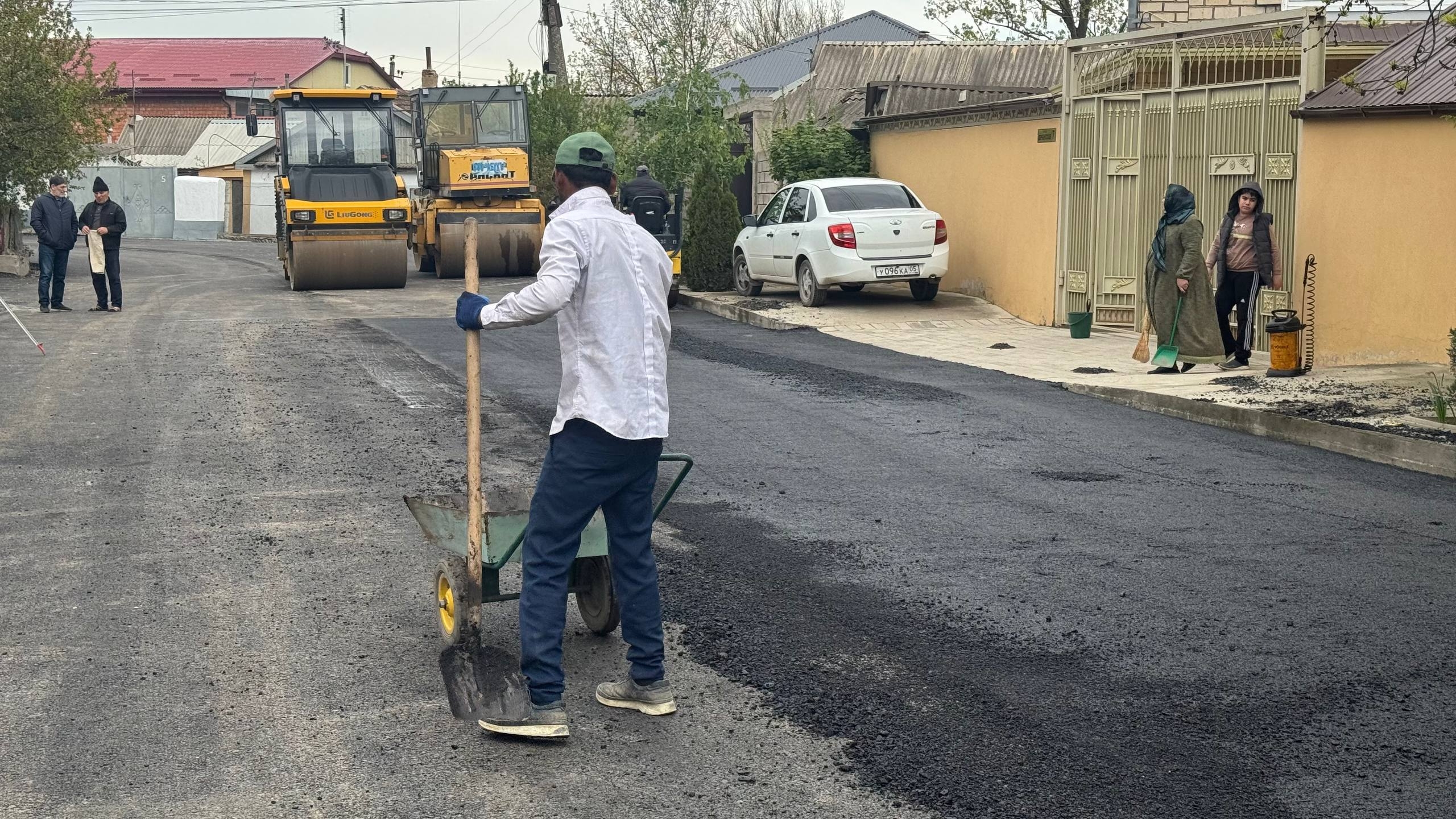 В Хасавюрте на улице Дербентская ведутся работы по укладке асфальта