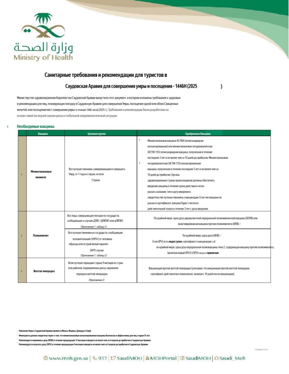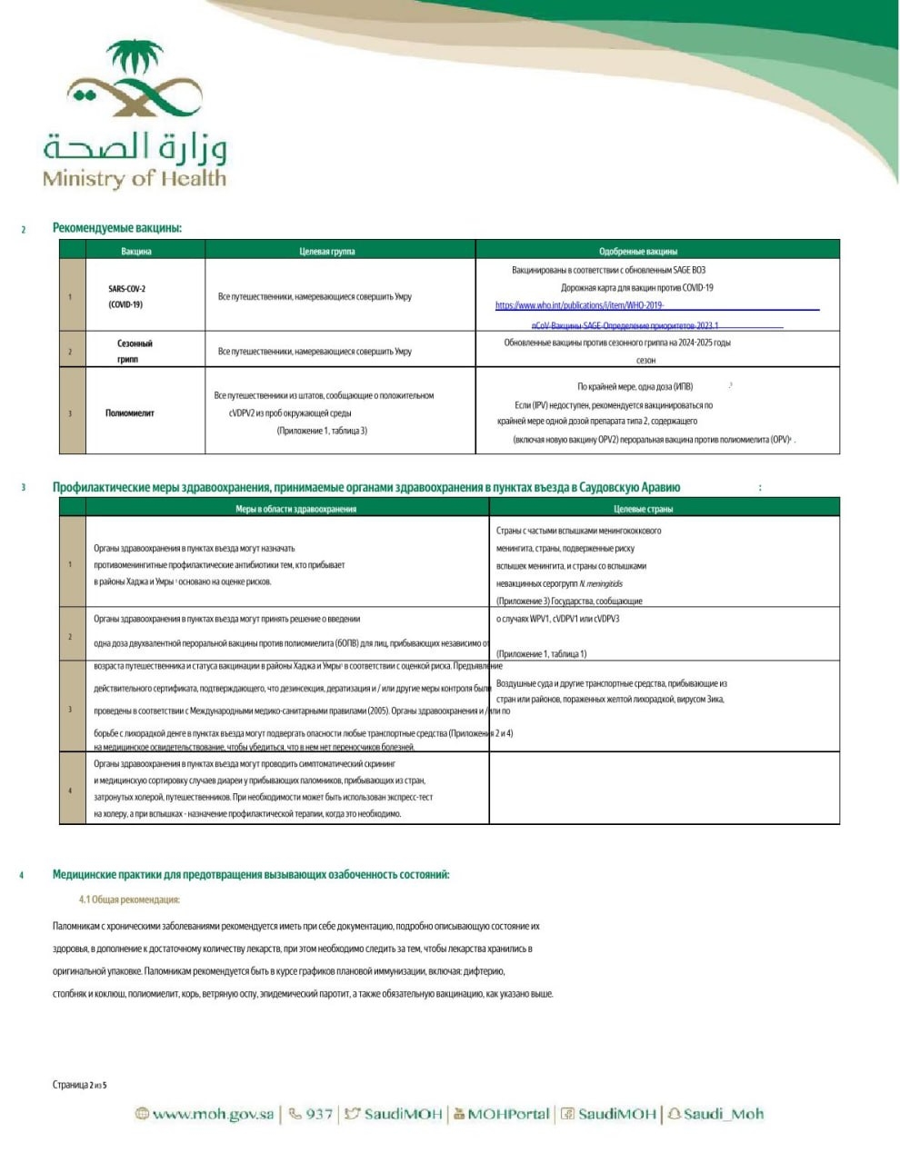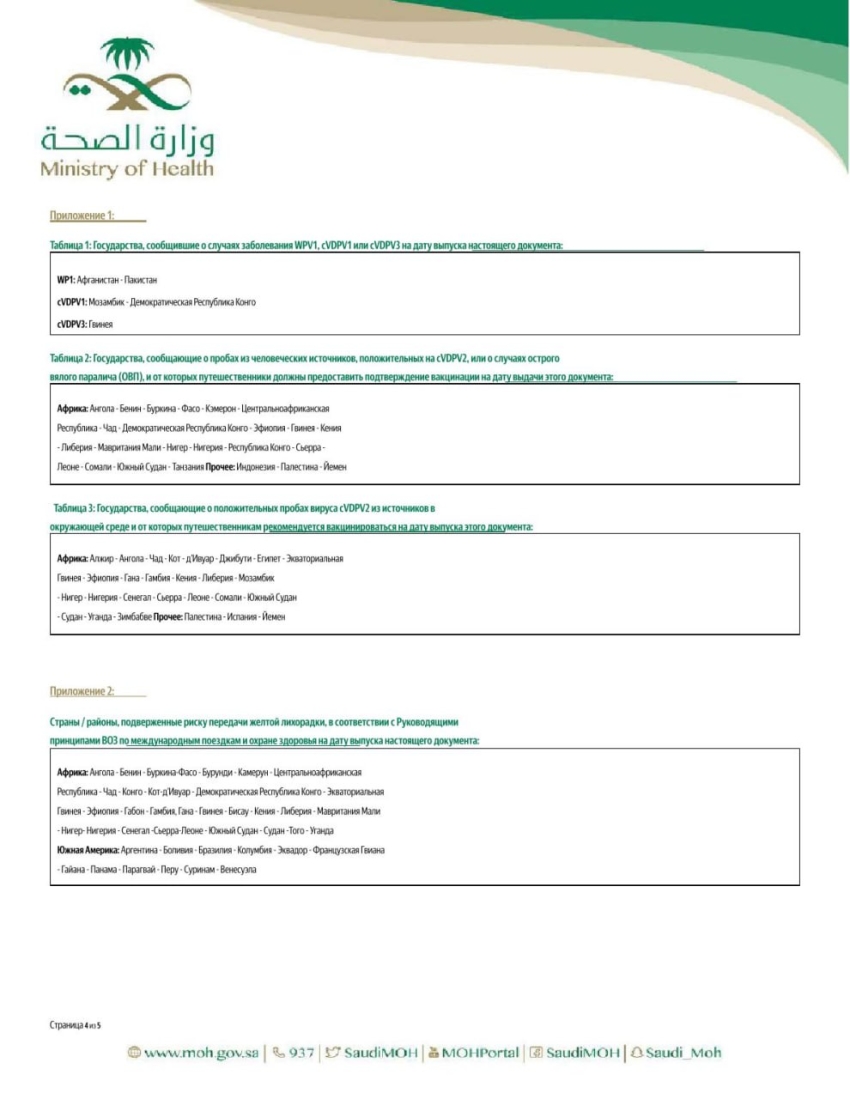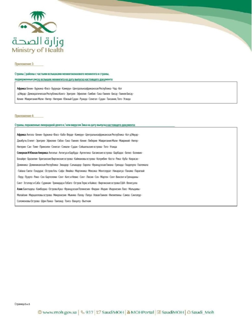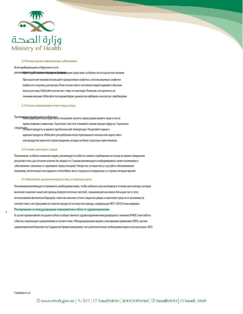 Рекомендации содержат актуальные требования и меры профилактики, направленные на сохранение здоровья паломников в период пребывания на территории Королевства Саудовская Аравия.