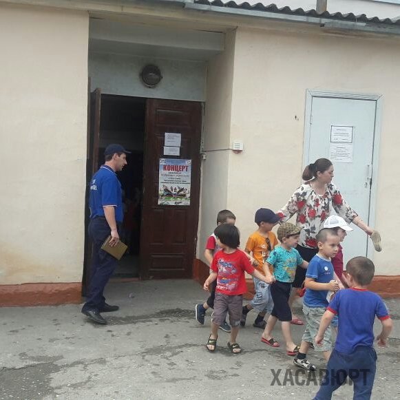 В ходе работы было обозначено условное место очага пожара и объявлено об эвакуации. Далее все воспитатели с детьми были эвакуированы из здания в безопасную зону, на территории дошкольного учреждения.