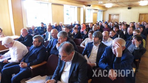 На встрече, проходившей в зале администрации, участие приняли Глава города Хасавюрт Зайнудин Окмазов, заместители главы администрации,представители федеральной налоговой службы по г. Хасавюрт, сотрудники правоохранительных органов, руководители управлений и ведомств муниципалитета, директора рынков и другие предприниматели города.