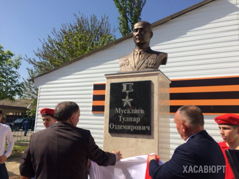 4 мая, на территории средней школы №5 г. Хасавюрт прошло торжественное мероприятие посвященное открытию бюста Героя России Тулпара Мусалаева.