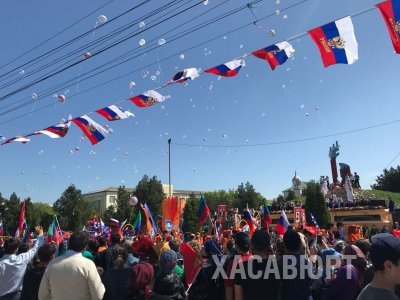 Первым перед пришедшими на парад со словами поздравления выступилГлава города Хасавюрт Зайнудин Окмазов, подчеркнув что ценой победы являются жизни миллионов и миллионов людей, и всё ради того, чтобы мы сегодня имели главное право – право на жизнь