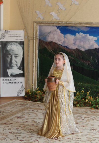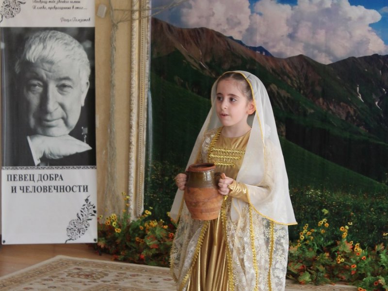 В большой театрализованной литературно-музыкальной композиции прозвучали стихи Р. Гамзатова, воспевающие духовное единство дагестанских народов и призывающие крепить дружбу, которая завещана нынешним поколениям славными предками. Второклассники под руководством своего учителя Мины Аджиевой эмоционально инсценировали фрагменты из гамзатовской прозы «Мой Дагестан», повествующие о том, как исстари дорожили побратимскими отношениями в Стране гор.