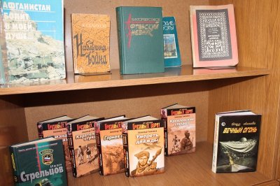На стеллажах представлены разнообразные издания, рассказывающие об отваге и доблести воинов российской армии. Здесь и малоизвестные публицистические произведения, и довольно популярная художественная литература по весьма актуальной теме.