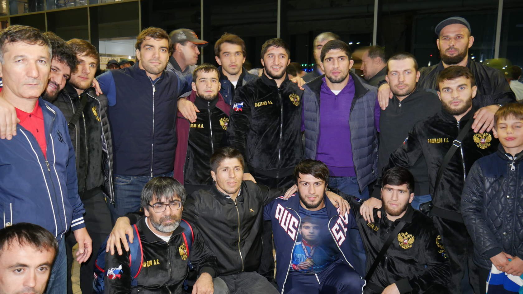 Триумфаторов чемпионата мира по вольной борьбе встретили в аэропорту Каспийска