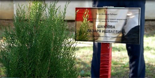 16 октября на территории гимназии им. М. Горького состоялась посадка дерева, памяти первого директора Шаулова Лазаря Ишваевича. Акция «Дерево Памяти» посвящена 75-летию Победы в Великой Отечественной войне, инициированной коллективом дворцов культуры «Спартак» города Хасавюрт. Лазарь Ишваевич был участником боевых действий Великой Отечественной войны.
