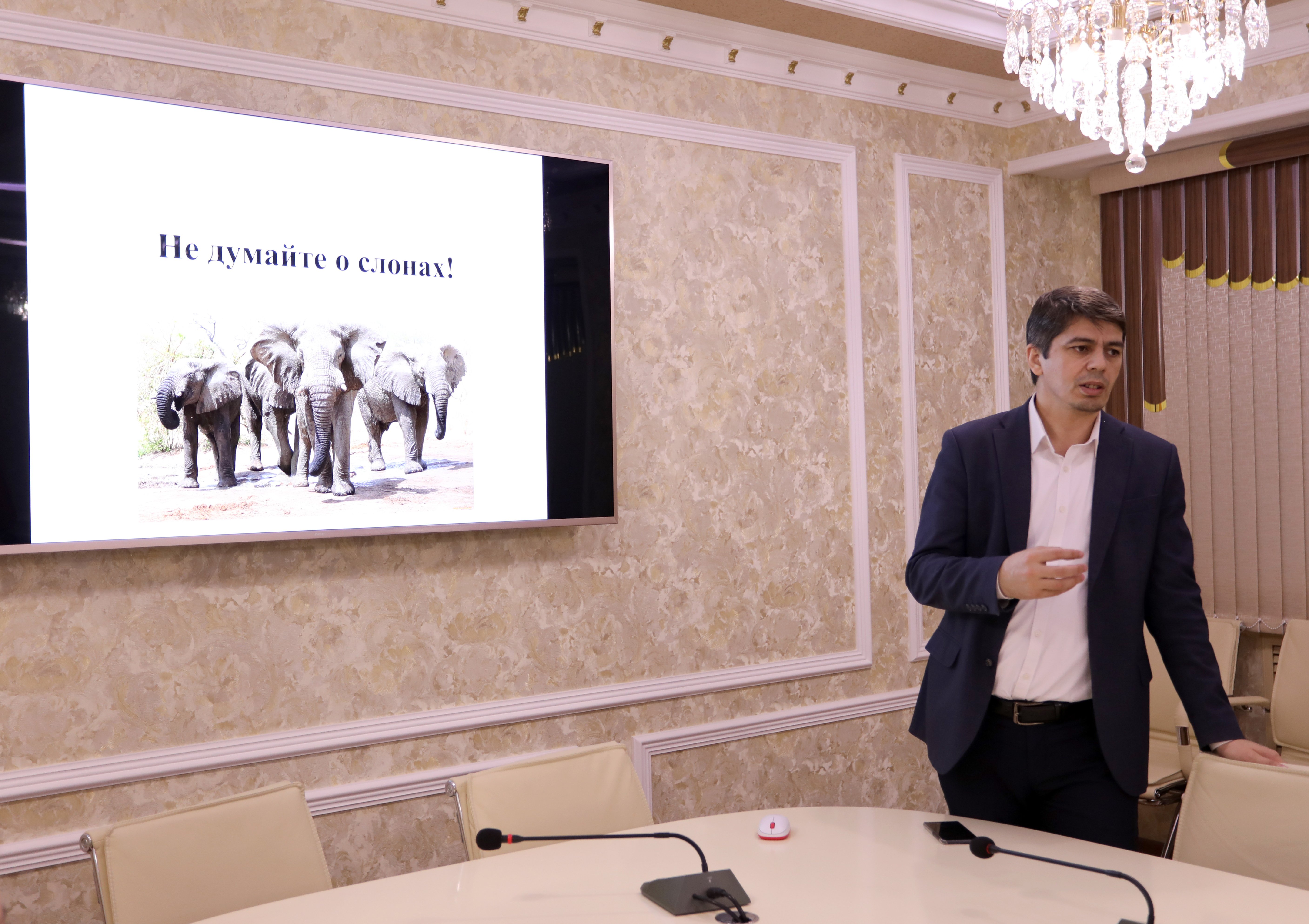 Спикером перед аудиторией выступил начальник МКУ «Городской информационный центр» г. Хасавюрт Магомед Курбанов, который подробно рассказал об основных инструментах формирования общественного мнения, этапах восприятия аудиторией информации через СМИ и социальные медиа.