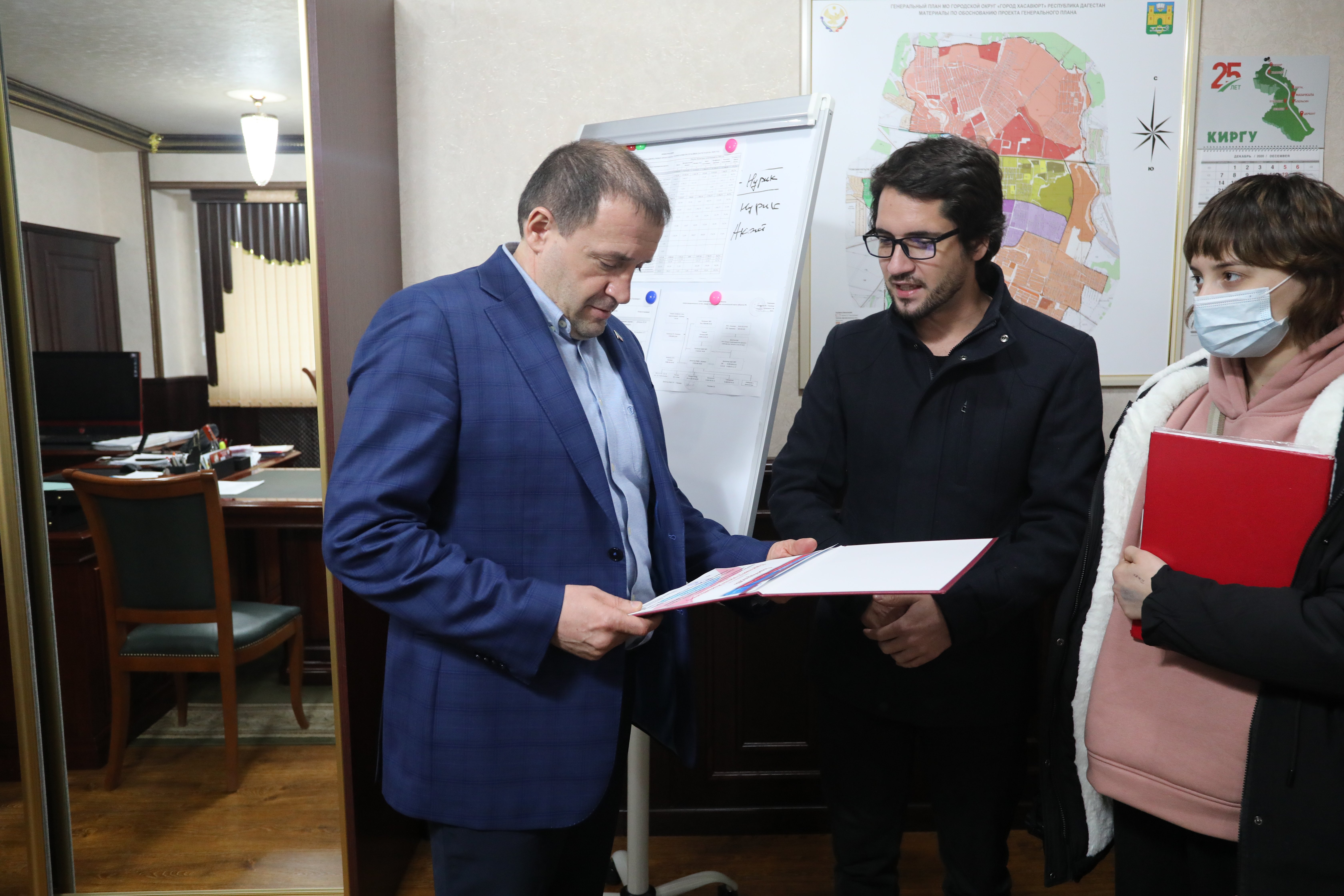 11 января в мэрии Хасавюрта Глава города Корголи Корголиев встретился с представителями ВОД «Матери России» - художественным руководителем ТС «Добрые руки», советником председателя ВОД «Матери России» по РД Дмитрием Цауром и художественным руководителем театральной студии «Добрые руки» Джамилей Будаевой.