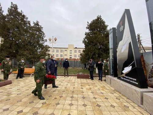 После минуты молчания на территории мемориального комплекса Сергей Меликов возложил цветы к памятникам и пообщался с хасавюртовскими воинами-афганцами.