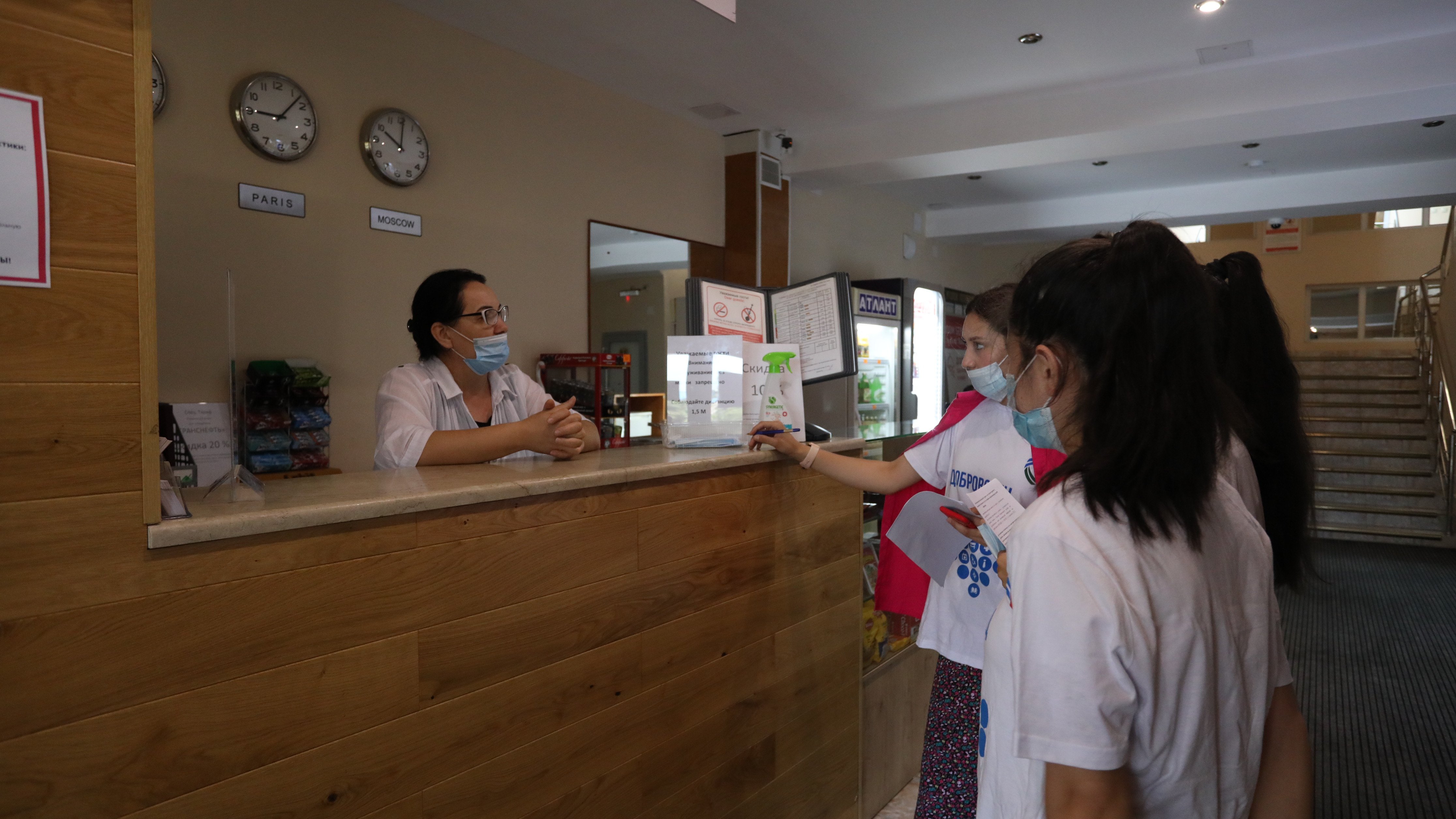 Молодые люди посетили гостиницы «Фламинго», «Киев» и «Динамо», где поинтересовались о соблюдении профилактических мер, связанных с коронавирусной инфекцией, наличии масок и антисептических средств и т.д.