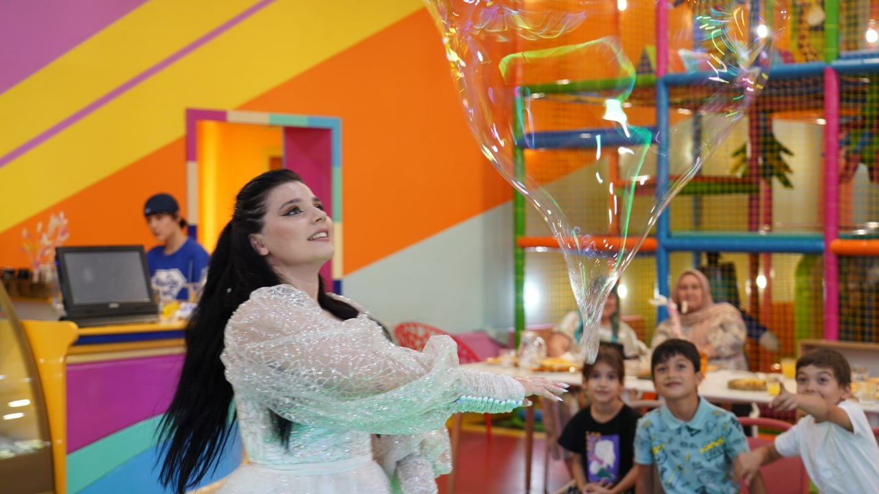 В рамках акции для будущих школьников была подготовлена шоу-программа с использованием мыльных пузырей и развлекательные номера, а гостям был предложен фуршет.