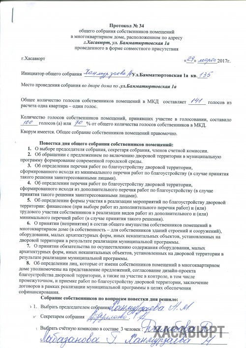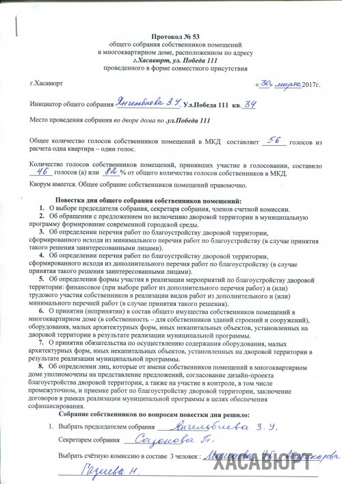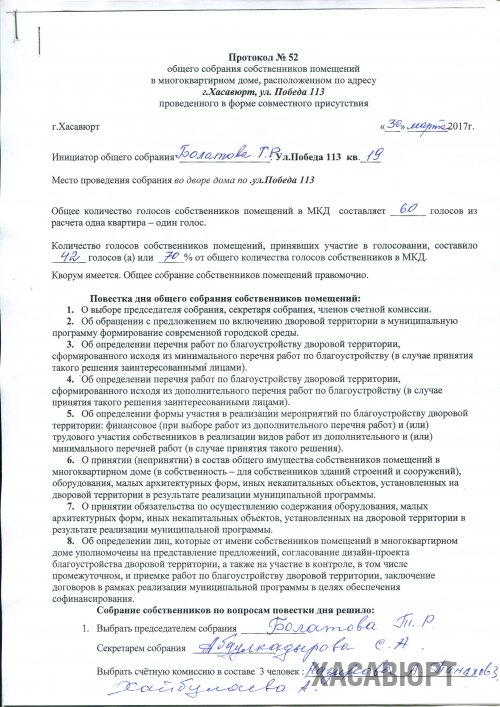 Заседание общественной комиссии по обеспечению реализации Муниципальной Программы "формирование современой городской среды" на территории городского округа "Город Хасавюрт" в 2017 году